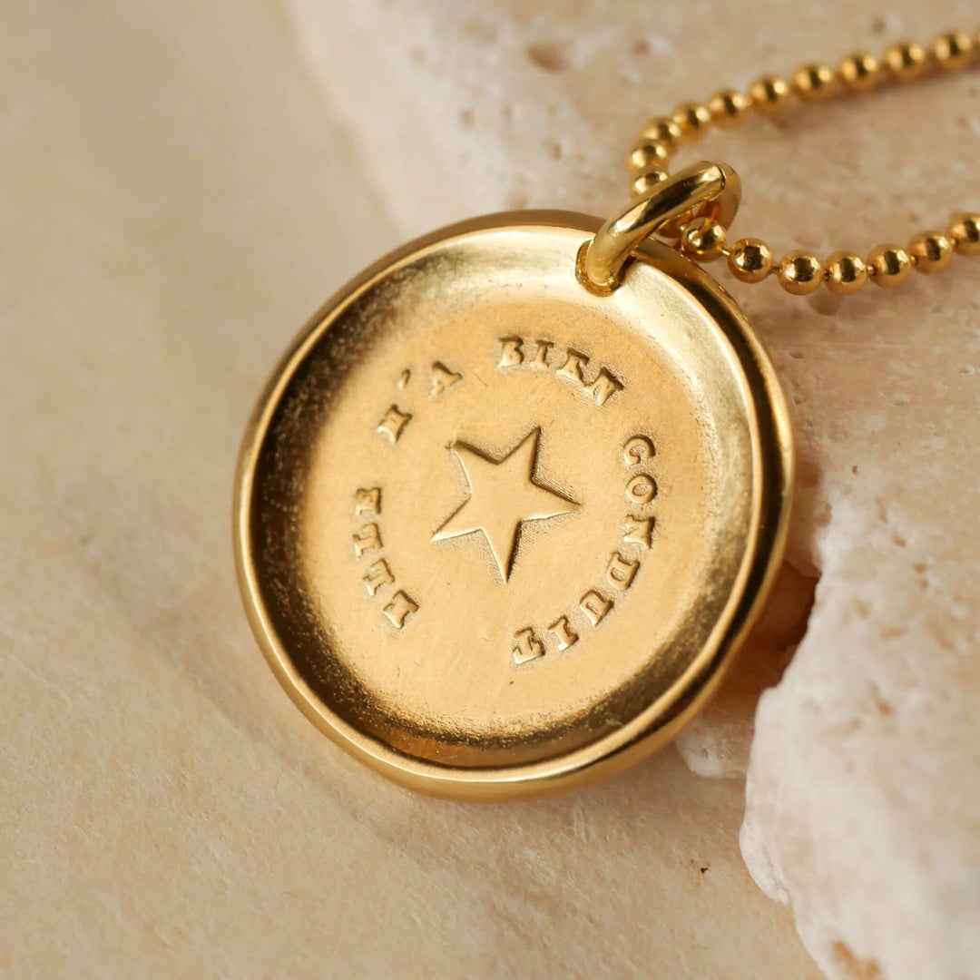 Münzkette mit Münzanhänger Stern. Französisches Briefsiegel mit Spruch: " Elle m'a bien conduit", Er hat mich gut geleitet...aus 18K gold vermeil von true Nuggets